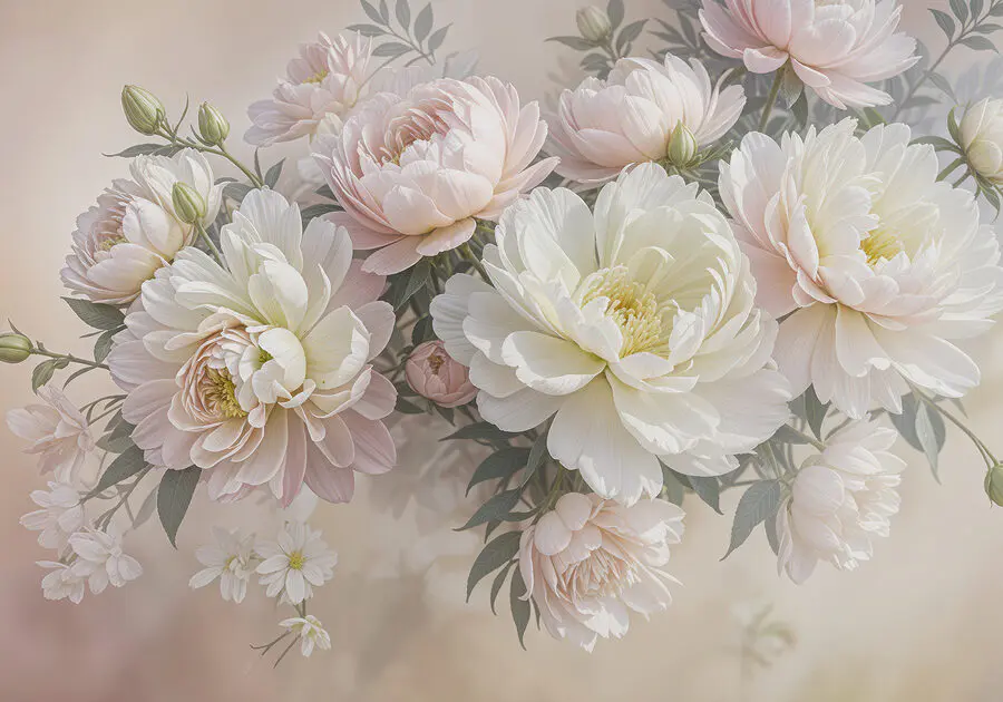 Fotótapéta Fehér és rózsaszín virágok csoportja