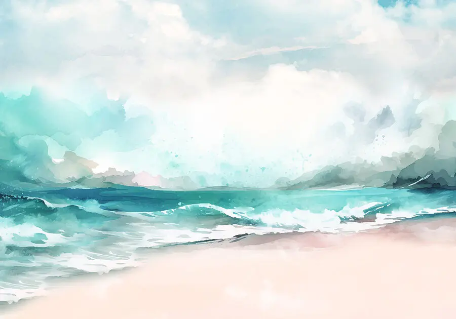 Fotótapéta Akvarell a tengerparton hullámokkal és felhőkkel