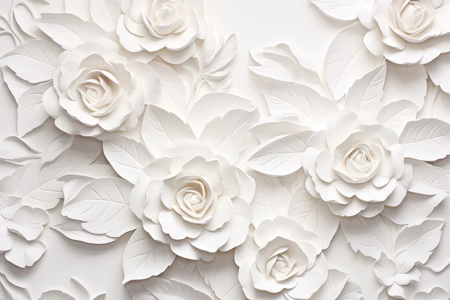 Fotótapéta Fehér papír virágok és levelek