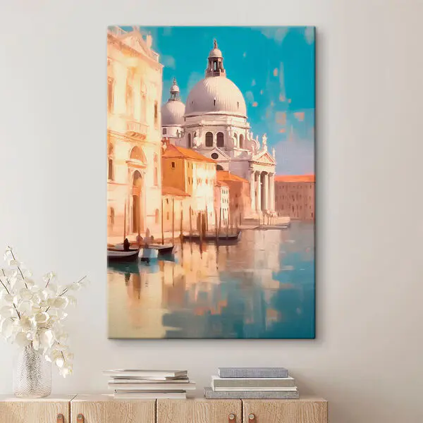 7499.35 Ft4499.61 FtVászonképek Vízfestmény egy városról csónakokkal és egy híddal