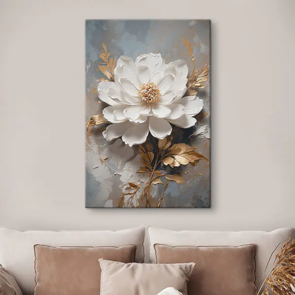 7499.35 Ft4499.61 FtVászonképek Fehér virág fémes levelekkel