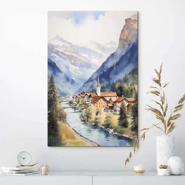 7499.35 Ft4499.61 FtVászonképek Akvarell festmény egy faluról a hegyekben