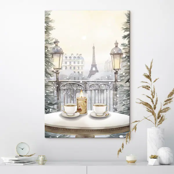 7499.35 Ft4499.61 FtVászonképek Festmény egy teáskészletről egy erkélyen, a háttérben egy magas toronnyal