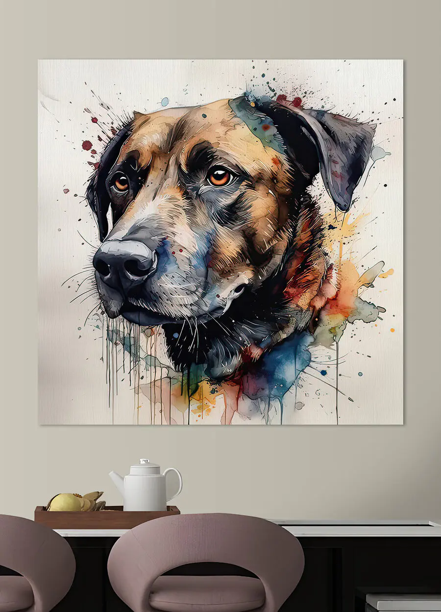Ugass a szépségre! Ez a magával ragadó vászonnyomat, a "Painting of a Dog", az ember legjobb barátjának lényegét örökíti meg merész színfoltjaival és kifejező szemeivel. Tökéletes a nappaliba vagy egy hangulatos dolgozószobába, a hűség és a társaság történetét meséli el - ki tudna ellenállni azoknak a kölyökkutyaszemeknek? Képzelje el, hogy kedvenc fotelje fölé akasztja, bájos és szeszélyes hangulatot kölcsönözve neki. Ez nem csak dekoráció; ez egy meghívás arra, hogy megállj és mosolyogj, melegséget és egy csipetnyi játékos kifinomultságot hozva a térbe.