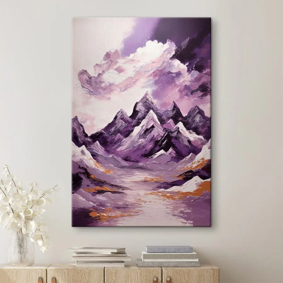 Vászonképek Lila hegyek felhőkkel és lila éggel