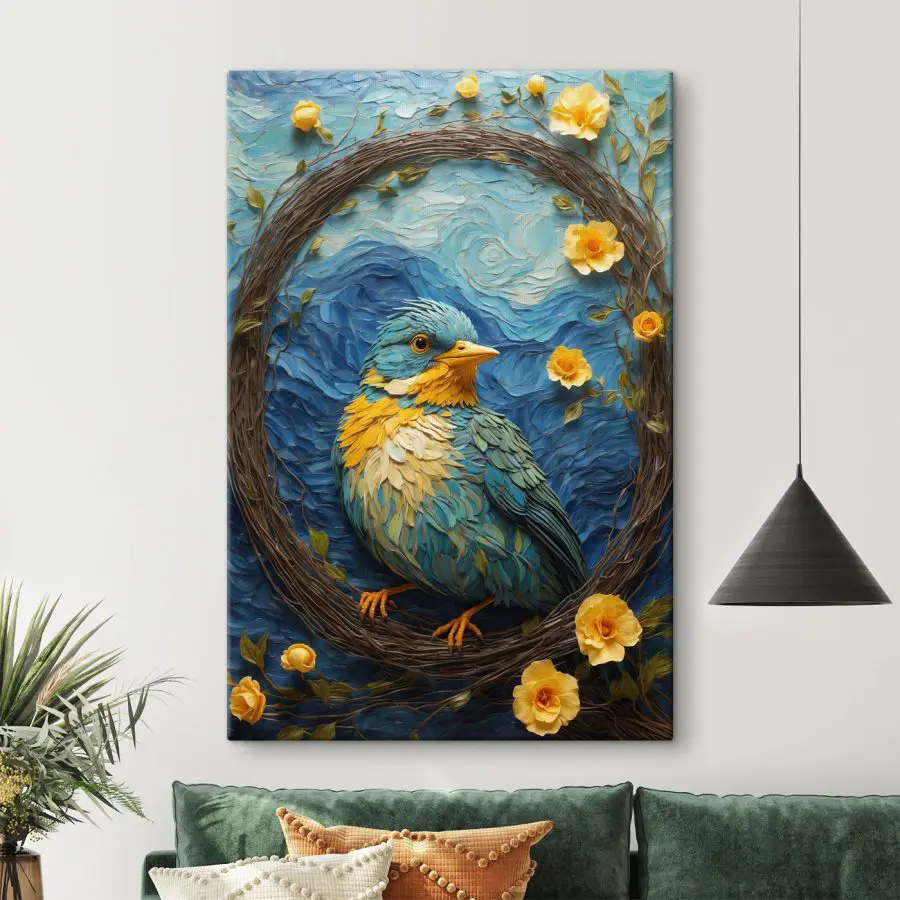 7772.06 Ft4274.63 FtVászonképek Egy színes madár ül egy labda virágokon