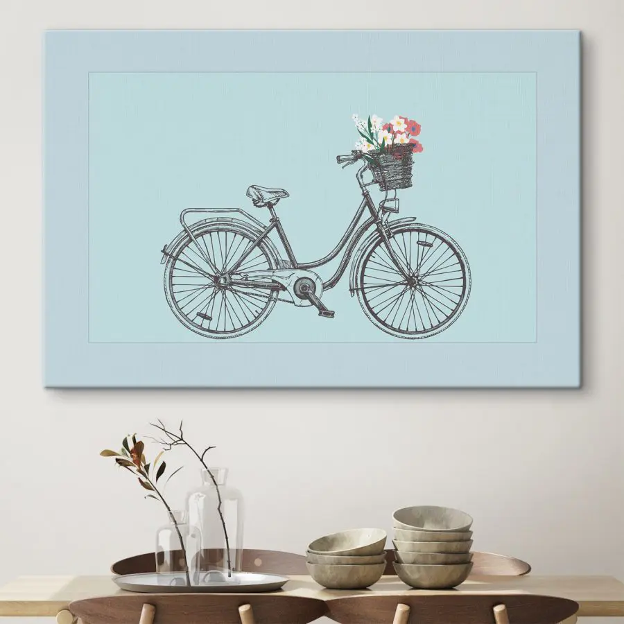 Vászonképek Kerékpár virágokkal a kosárban