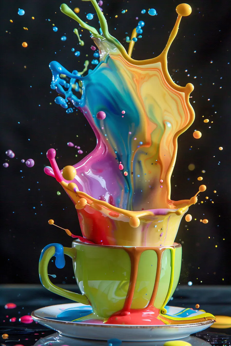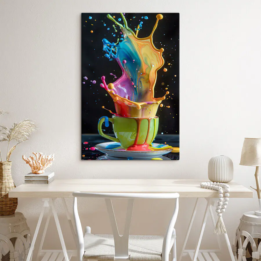Vászonképek Színes fröccsenő folyadék egy csészében