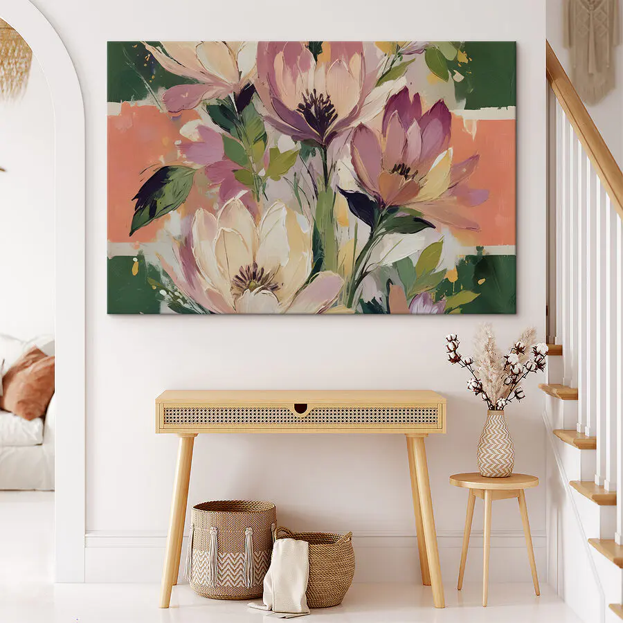 Dive into a world of color with this stunning canvas print of flowers. Imagine this: you walk into a room, and instantly, there's a burst of vibrant blooms greeting you—like nature’s way of giving you a hug. Perfect for those who adore a bit of floral flair without the upkeep. The textures invite you to almost feel the petals, making it a delightful centerpiece for your space. It’s like having a little garden, minus the bees and watering cans. Whether in a cozy reading nook or a bustling living room, it effortlessly adds charm and grace!