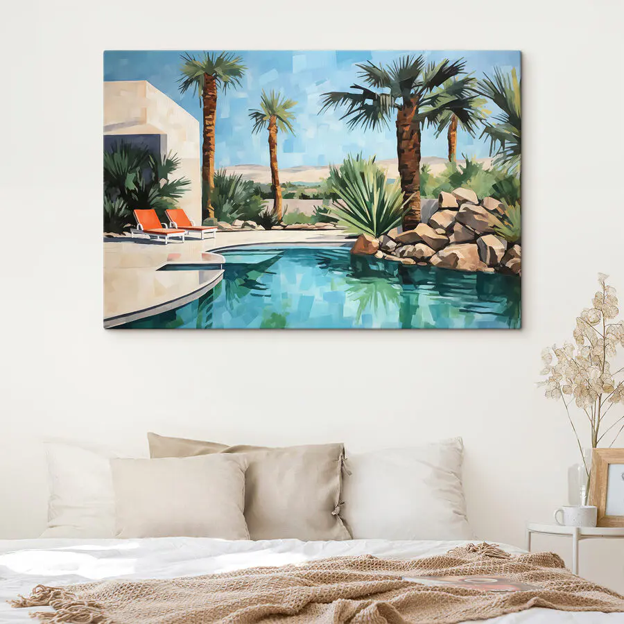Vászonképek Medence pálmafákkal és székekkel