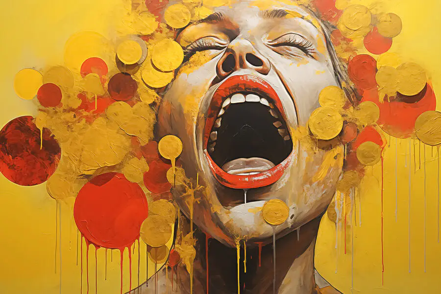Vászonképek Egy nő festménye sárga és piros festék csöpögő sárga és piros festékkel