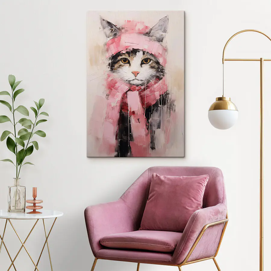 Vászonképek Festmény egy sálat viselő macskáról