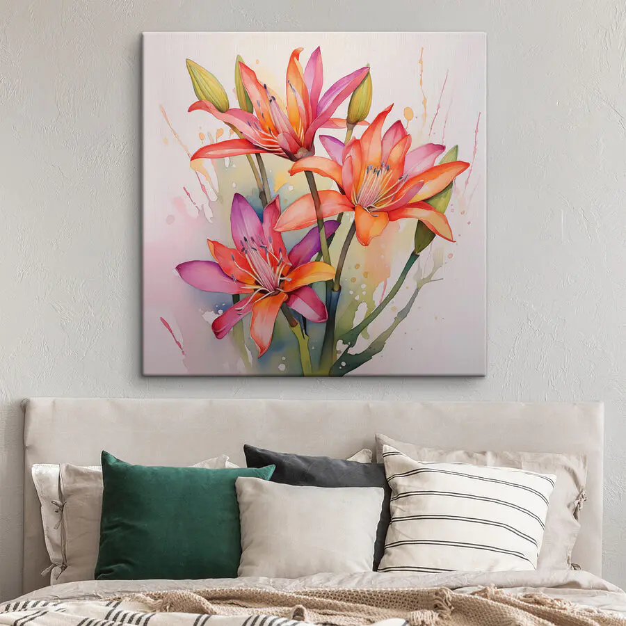 Képzelje el, hogy egy színpompás, jó reggelt suttogó színpompára ébred - ez a virágfestmény pontosan ezt teszi. Tökéletes a virágok szerelmeseinek és mindazoknak, akik szeretik az akvarell szeszélyt a falon. Olyan, mintha egy kis darabka kertet tartanál a lakásban, kertészkedés nélkül! Minden egyes virág mintha táncolna a vásznon, és azt ígéri, hogy még a legesősebb napot is feldobja. Tegye ki egy olyan szobába, amelynek szüksége van egy kis életre, vagy hagyja, hogy ez legyen a vidámság csobbanása egy hangulatos zugban. Művészet, amely olyan, mint egy napsütötte mosoly - ki ne szeretné ezt?