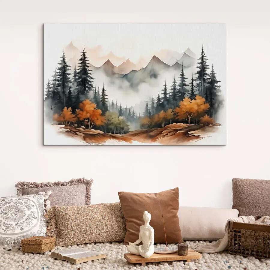 7772.06 Ft4274.63 FtVászonképek Akvarell festmény egy erdő és hegyek