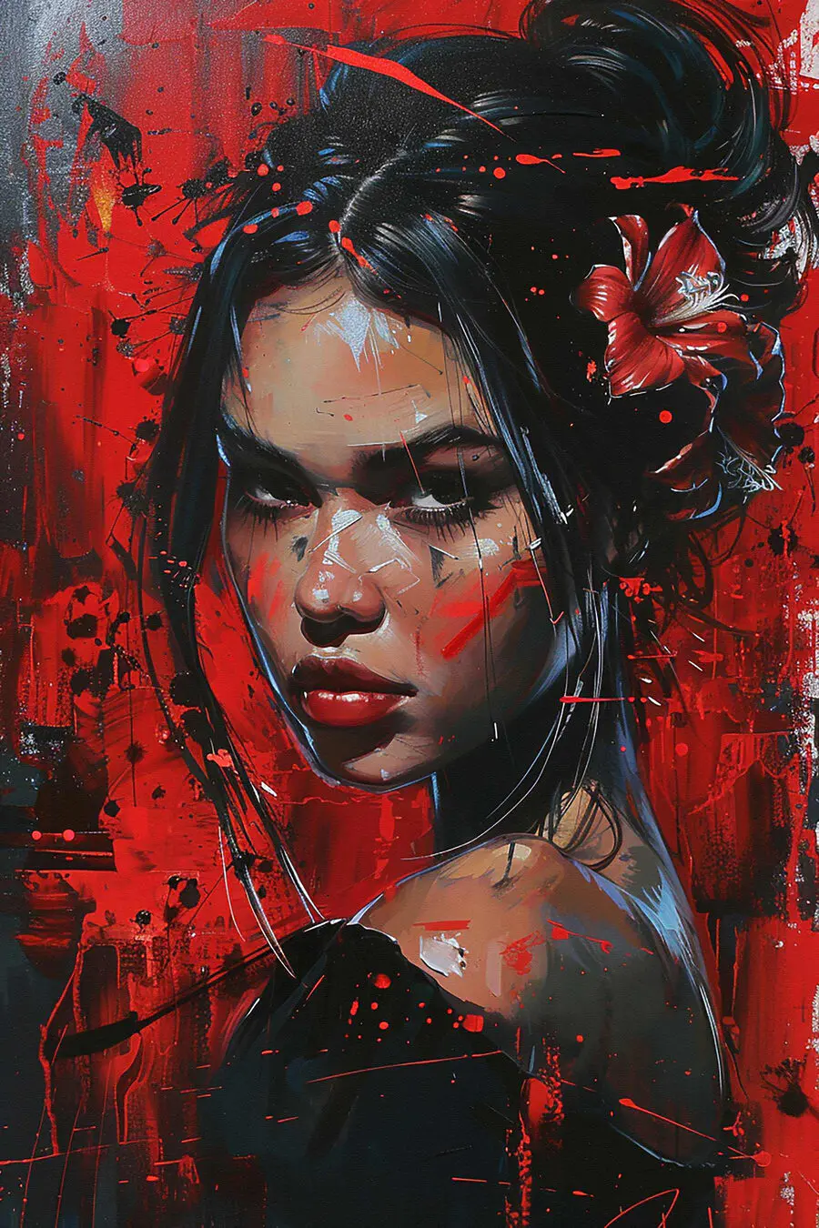 Vászonképek Egy nő festménye piros festékkel