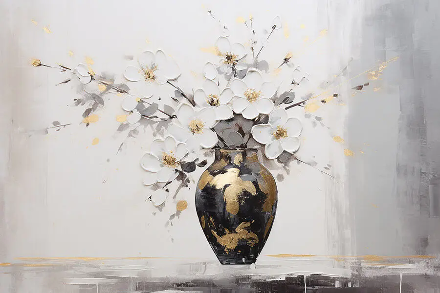 Dobja fel bármelyik szobát ezzel a szép vászonképzelettel, amelyen egy vázában lévő lenyűgöző virágkompozíció látható. Képzelje el, ahogy belép a helyiségébe, és a fehér virágok lágy szépsége fogadja, minden egyes szirom a saját történetét meséli el a meleg háttér előtt. Olyan, mintha egy kertet hozna be a házba, öntözőkanna és bosszantó pollenek nélkül! Tökéletes egy hangulatos sarokba, vagy akár egy kanapé fölé beszélgetésindítónak. Hozzáadja a természetnek azt az érintését, amitől egy ház otthonosnak érzi magát. Ráadásul remek módja annak, hogy egy kis örömet szerezzünk - és kinek nincs szüksége erre? Mosolyogjatok!