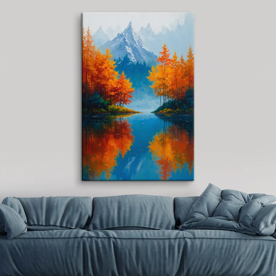 9327.34 Ft5130.04 FtVászonképek Tó narancssárga levelekkel és hegyekkel a háttérben