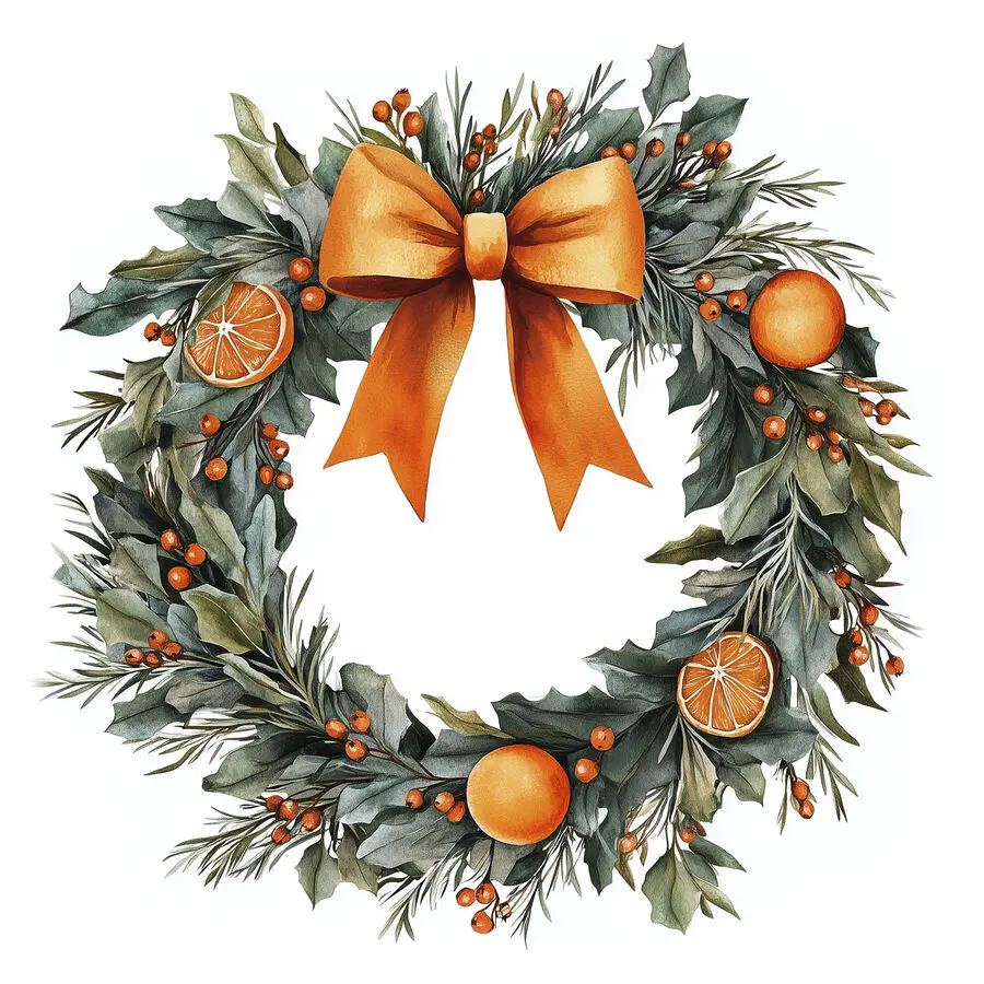 Vászonképek Akvarell koszorú narancsokkal és bogyókkal