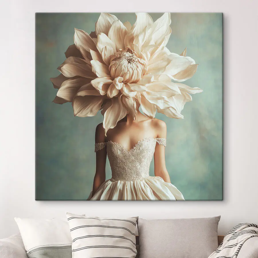 Vászonképek Ruhát viselő nő nagy virággal a fején