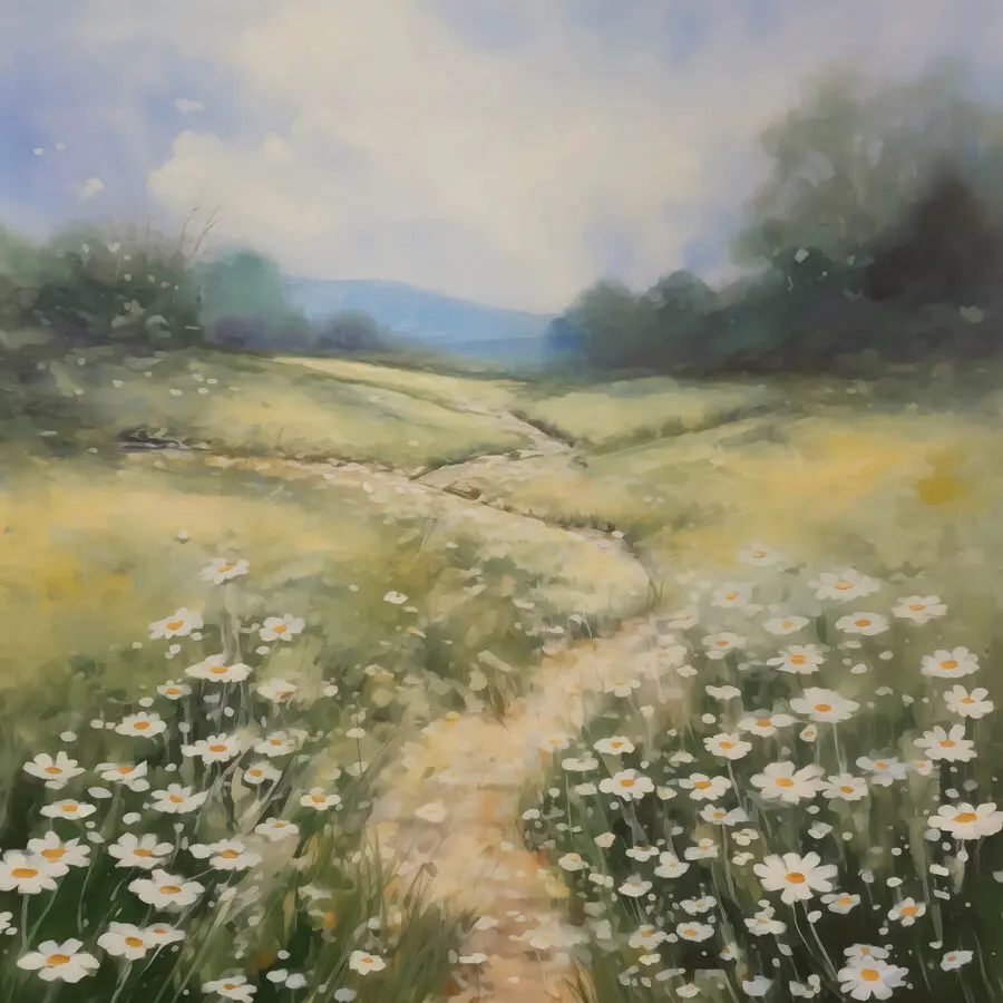 Vászonképek Festmény egy virágmezőn átvezető ösvényről