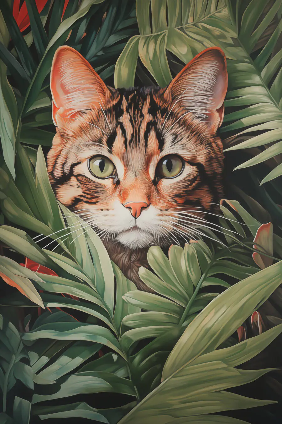 Bemutatunk egy olyan vászonnyomatot, amely olyan, mint egy meleg ölelés a dzsungelből - találkozzon a "Macska a dzsungelben" című képpel. Ez a játékos macska a buja zöldellő növényzeten keresztül kukucskál, és olyan érzést kelt, mintha a falakat egy kis vadon bája elevenítené meg. Képzeld el, hogy belépsz a helyiségedbe, és azonnal késztetést érzel arra, hogy a belső felfedeződet irányítsd. Ez nem csak művészet - ez egy beszélgetésindító! Tökéletes a hangulatos sarkokba vagy a kanapé fölé, ez a nyomat egy csöppnyi természetet hoz otthonába, meghívva egy kis szeszélyt és csodát. Beszéljünk a macskásságról!