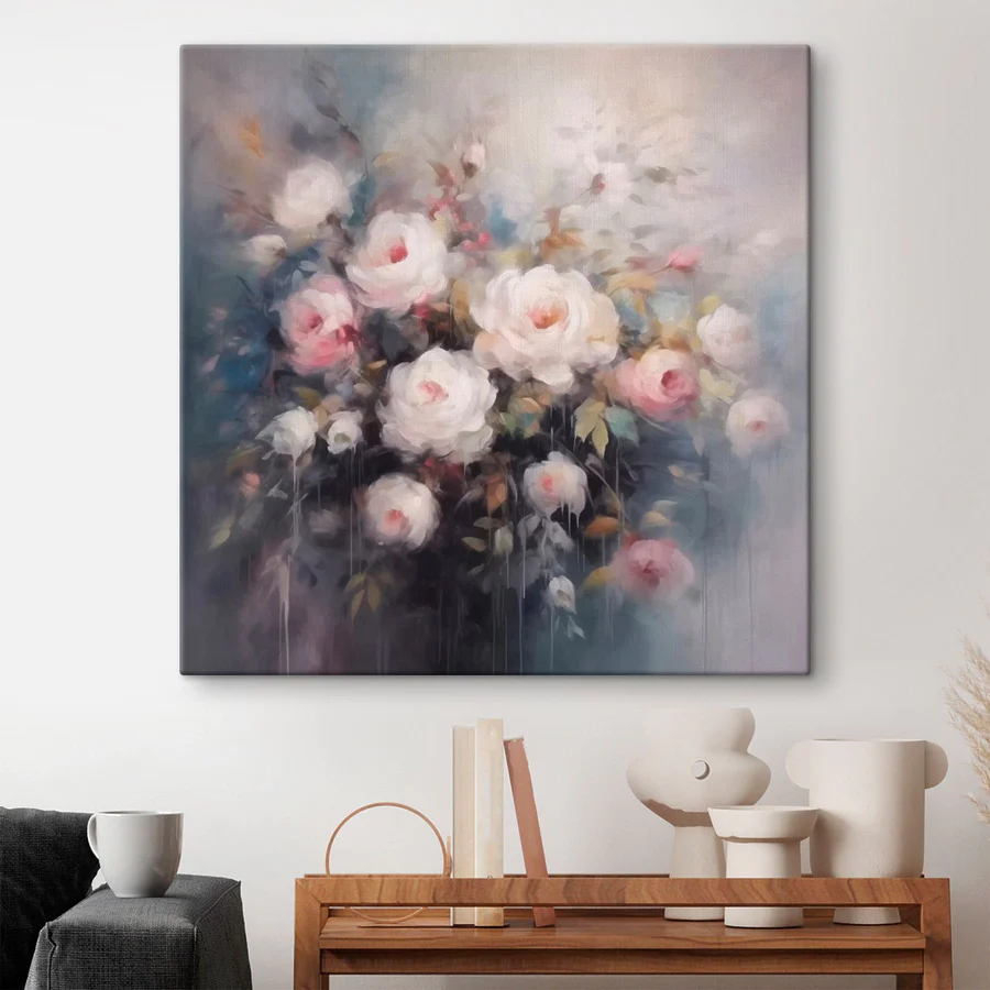 Bármelyik szobát hangulatossá varázsolhatod ezzel a lenyűgöző vászonnyomtatással, amely egy vázában lévő virágcsokrot ábrázol. A lágy, álmodozó színek és a finom ecsetvonások nyugtató hangulatot árasztanak, így tökéletes választás nappaliba, hálószobába vagy akár arra a falra, amelyről folyton azt gondolod, hogy "valamire" van szüksége. Képzelje el, ahogy kávét kortyolgatva csodálja, ahogy a fény táncol a szirmokon - olyan, mint egy kis műalkotásba csomagolt hangulatfokozó. Ráadásul nincs szükség öntözésre! Akár ajándék egy barátnak, akár saját magadnak, ez a nyomtatás elegánsan hozza be a természetet a belső térbe. Képzelje csak el - a barátok megállnak nála, és megcsodálják az "egzotikus kertészkedési képességeit". Ki gondolta volna, hogy a virágok ilyen jó érzéssel tölthetik el az életet?