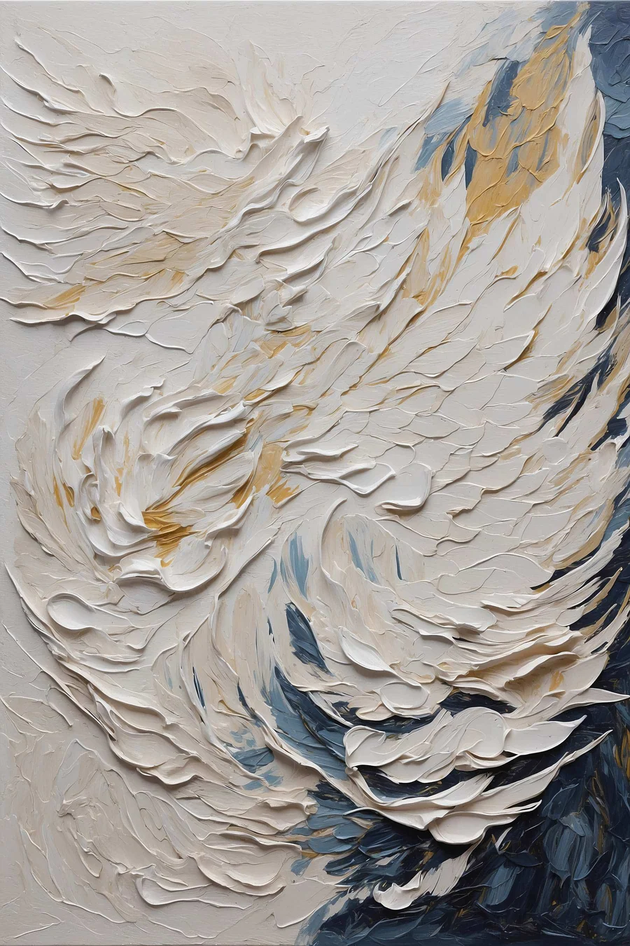 Ez a lágy fehér és kék színekbe öltöztetett vászonnyomat friss levegőt hoz bármilyen térbe. Képzelje el, ahogy a kényelmes kanapé fölé lóg, könnyedén összefogva a szobát. Az áramló mintázat szinte táncolni látszik a falon, álmodozásra és inspirációra invitálva. Olyan, mintha egy kis darab nyugalom lenne, készen arra, hogy megnyugtassa a mindennapok káoszát. A barátok talán megállnak, elámulnak, és azon tűnődnek, hogy ez egy titkos kapu az óceáni szellőhöz. Tökéletes azok számára, akik imádják az egyedi dekorációt, amely beszélgetésre készteti őket - vagy egyszerűen csak jól érzik magukat. Egy csöppnyi kreativitás, egy csipetnyi elegancia - mit nem lehet szeretni?