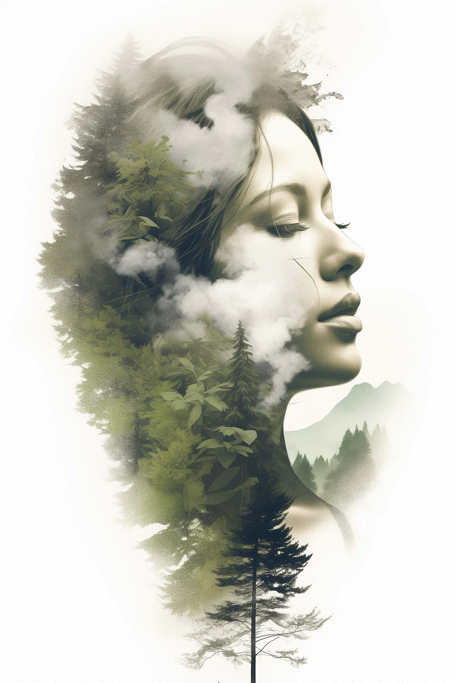 Vászonképek Nő’s arc felhőkkel és fákkal