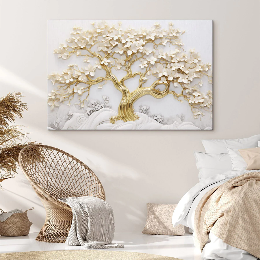 Vászonképek Fehér levelű és virágú fa