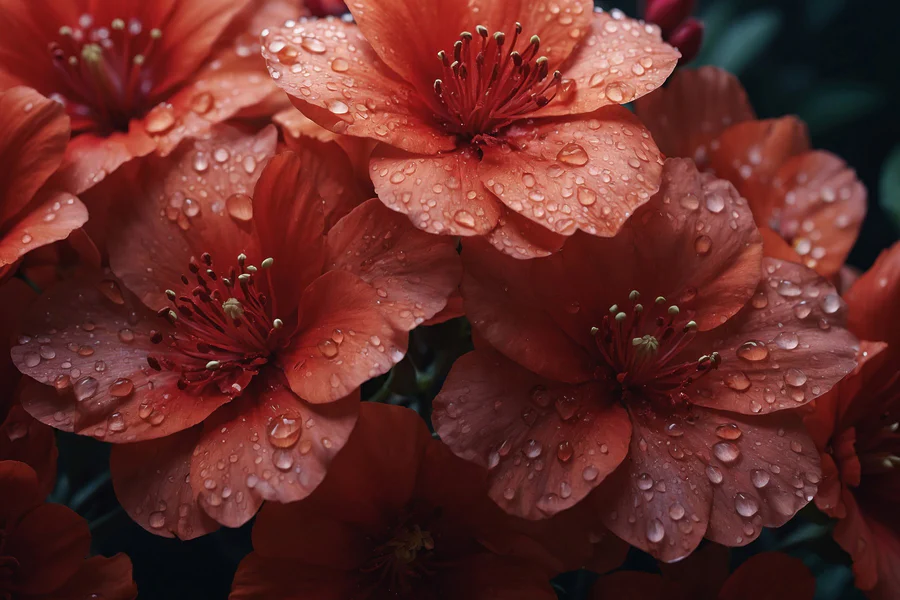 Vászonképek Piros virágok csoportja vízcseppekkel