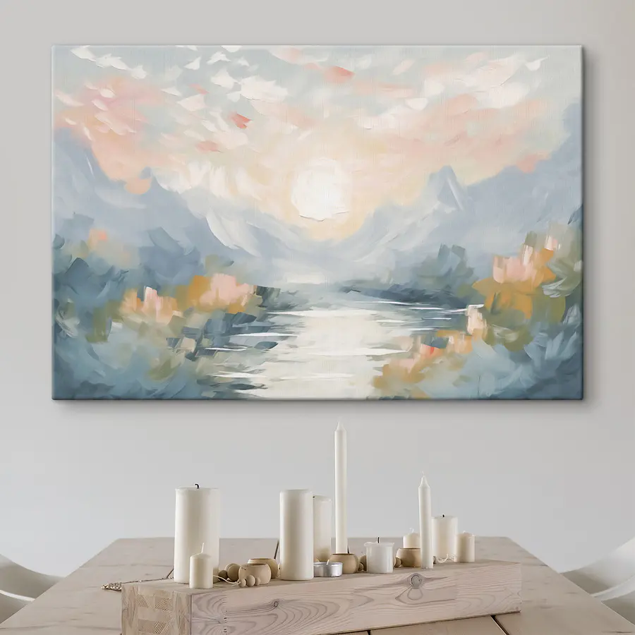 7499.35 Ft4499.61 FtVászonképek Egy erdő festménye hegyekkel és fákkal